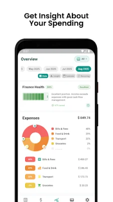 The app also provides smart financial insights through visual reports and charts, allowing you to understand your spending habits. You can compare expenses month by month to identify trends and get a clear picture of your net worth.