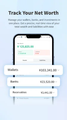 Money Manager goes beyond simple expense tracking and offers full portfolio and net worth management. You can monitor your Cash, Bank balances, Fixed Assets, and Investments, as well as track Credit Cards and Loans to manage your liabilities. The app also automatically calculates your net worth in real-time, giving you a complete overview of your financial health.