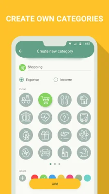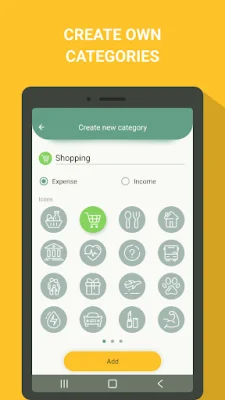 Users can further personalize the app by choosing from ready-made templates for common expenses such as groceries, hobbies, and utility bills, or by creating their own categories and customizing them with colors and titles. This allows users to tailor the app to their specific needs and get the most out of it.