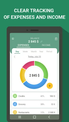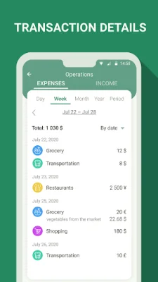 The app also offers detailed reports for different time periods and categories of expenses, giving users the ability to sort transactions by date or amount. This level of customization makes finance monitoring simpler and more personalized for each user.