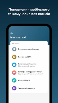 Наш банк також пропонує безкоштовні платежі між картками, штрафи, світло, комунальні послуги та поповнення мобільного телефону. Ми також пропонуємо електронний підпис документів через Дія, що дозволяє зручно та швидко здійснювати операції. У нас є можливість придбати eSIM в 1 дотик, що дозволяє використовувати віртуальну SIM-карту замість фізичної. Також, наші клієнти можуть користуватись зручним віртуальним гам