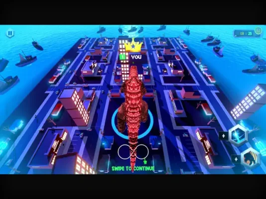 Monster City Destruction offers two game modes: Free Mode and Challenge Mode. In Free Mode, you can unleash your monsters and cause destruction without any limitations. In Challenge Mode, you can play during the day or night and collect gems to unlock power abilities. The goal is to beat all the other monsters and become the ultimate champion. The game also features simple controls, with just swipes on the screen to move your mighty monsters and destroy the city.