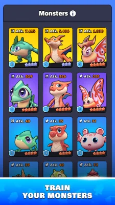 Put your skills to the test in intense idle monster battles. Train your team and use strategic tactics to defeat rival trainers, guardians, and bosses. Plan your formation, upgrade your creatures, and unleash powerful attacks in this thrilling idle experience.