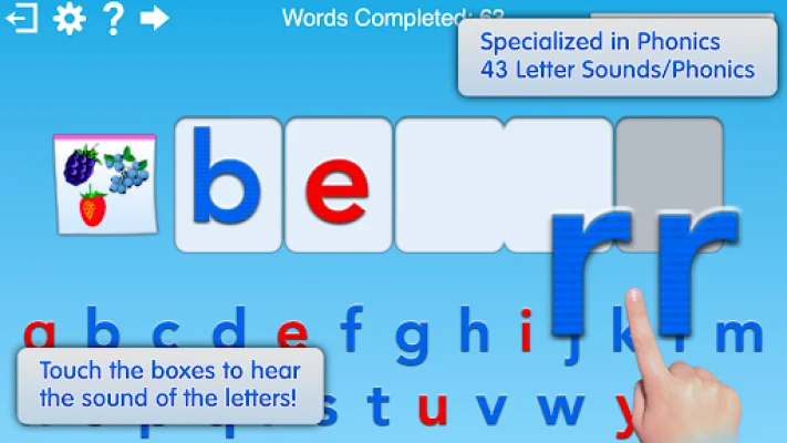 The app focuses on teaching children two fundamental concepts: phonemic awareness and phonics. Through interactive activities, children can learn that words are made up of sounds and letters, and they can also memorize the phonics associated with each letter. This is achieved through touch-based activities where children can drag letters to complete words and hear the corresponding sounds.