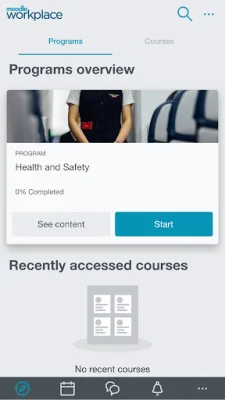 If your Moodle Workplace site has been properly set up, you can use this app to access the Learner Dashboard, which provides a centralized hub for all your learning activities. This includes browsing course content, even when you are offline, receiving instant notifications for messages and other important events, and easily connecting with other learners in your courses.