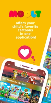 With a MOOLT subscription, users can download episodes onto their device for offline viewing, watch in HD and full HD quality, create personalized playlists, and utilize parental control features to manage their child's viewing time and content. The app features popular cartoons such as "Be-Be-Bears", "FAST", "Heroes of Envell", and more, although not all cartoons may be available in certain languages.