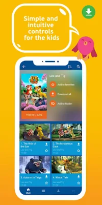 This application offers a wide selection of over 800 episodes of colorful animated cartoons for users to enjoy. Some episodes of each animated series are available for free, while full access to the application requires a subscription. The first 7 days of the subscription are free, allowing users to try out the full functionality of the app before committing to a plan.