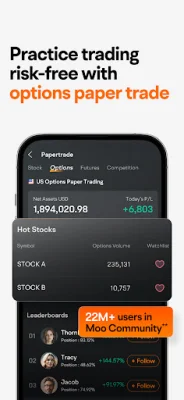 In addition to trading, Moomoo also offers a platform for users to build up their skills. With risk-free paper trading in stocks, options, and ETFs, users can practice and learn from top users' portfolios. The app also has active communities of over 21 million global users, allowing for engagement and sharing with like-minded individuals. Users can also systematically learn practical trading strategies and theoretical knowledge through 200+ comprehensive courses designed for all levels. And for any questions or concerns, trained customer service is available 24/7 via phone, live chat, and email.