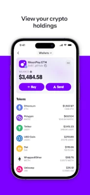 MoonPay is an application that allows users to manage all their cryptocurrency wallets in one place. It offers a unified wallet management system, where users can connect multiple crypto wallets and view detailed purchase history. One of the key features of MoonPay is the ability to buy cryptocurrency with a variety of payment methods, including debit and credit cards, mobile payment options, bank transfers, and local payment methods. This makes it easy for users to purchase their preferred cryptocurrency in just a few clicks.