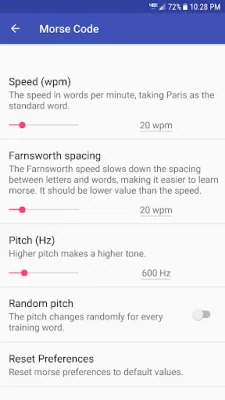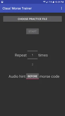This app is designed to help users learn Morse code by playing characters, words, and phrases in Morse code and then speaking the answer out loud. This allows users to learn without having to constantly look at or interact with their phone. The goal is to help users and the creator improve their ability to copy Morse code in their heads.
