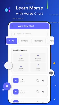 The app also includes an interactive Morse code chart, which features the full Morse code alphabet, numbers, and punctuation. Users can tap on the chart to hear and see Morse signals, making it a great tool for learning how to translate text to Morse code and back. This feature is perfect for students and beginners who want to learn Morse code.