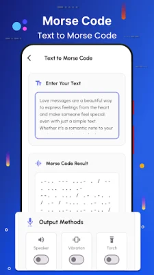 One of the main features of this app is its real-time translator, which instantly converts Morse code into text and vice versa. Users can also copy, share, and save their translations. The app supports alphabets, numbers, and symbols, making it versatile and useful for a wide range of purposes.