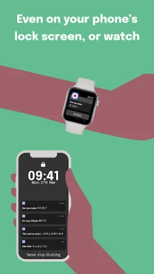 One of the unique features of this app is that users can study without even opening the app. They can set up flexibly scheduled notifications, which will send them example sentences to study at designated times. This feature is also available on the user's watch, making it even more convenient to study on the go.