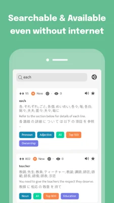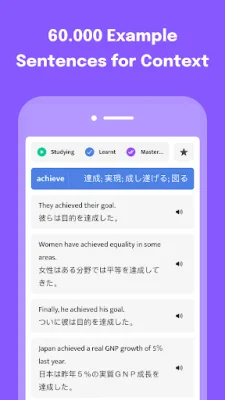 This application is designed to help users learn new words and improve their vocabulary by providing them with 100147 example sentences that put the words into context. These sentences also come with pronunciations, making it easier for users to learn how to properly say the words.