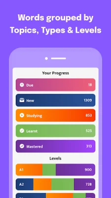 In addition to these features, the app also offers various quiz types for users to practice and master all the words in their vocabulary. This includes favorite quiz types that users can choose from to make their learning experience more enjoyable and effective. The app also encourages users to be original and SEO-oriented in their practice, which can help them retain the words better and improve their language skills.