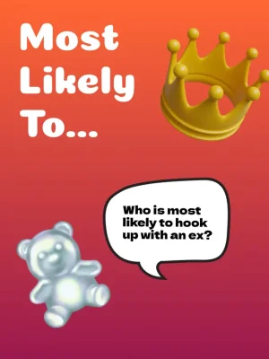 Most Likely To is a party game that promises to turn any gathering into a night to remember. It's the ultimate game for bringing laughs, surprises, and unforgettable moments to any social event. Whether you're having a sleepover, a casual hangout, or a wild night with friends, this game is designed to help everyone open up and have a blast. It's perfect for a variety of occasions, including parties and game nights, road trips, icebreakers, sleepovers, or even just when you're bored with your group chat.