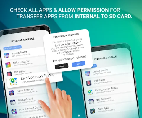 This app is designed to help users manage their phone's storage space by allowing them to move apps and files to their SD card. With just one click, users can easily transfer apps from their phone's internal memory to their SD card, freeing up space and potentially improving the performance of their phone.