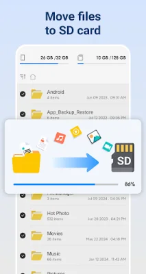 This app is designed to help users free up space on their device by easily moving files to and from their SD card. It is especially useful for devices with low internal memory capacity or for those who want to quickly back up their files. The app allows users to select multiple folders and files to move or copy, making the process fast and easy.