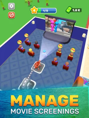 Have you ever dreamed of owning your own theatre? As a movie enthusiast, your main responsibility is to ensure that your customers are satisfied by keeping the movies running smoothly. You have the power to choose which movies to load for your fancy theatre fans and even unlock new film genres to embark on a new journey with your customers.