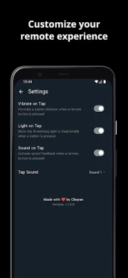 In summary, this app offers a simple and efficient solution for managing your car MP3 player, music speaker, and FM radio. Its user-friendly interface and night mode make it easy to use at any time, and its support for IR functionality allows it to serve as a versatile remote for your various MP3 devices. With this app, you can streamline your music control and enjoy a hassle-free experience. Just make sure your phone has an IR blaster to unlock all of its features.