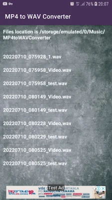 On the second page, users can view a list of the converted WAV files and open them directly. The converted files are stored in the /Music/MP4toWAVConverter path for easy access. This makes it convenient for users to locate and use their converted files.