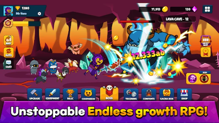 I'm gonna fight the strongest monsters and become the most famous hero in the world! In this game, you will tap your way to victory as you defeat monsters and become a superhero. Mr. Hero is an RPG game that is easy to play and will fully immerse you in its world. With its idle and collective interface, you will experience an exponential growth speed that will give you an unbelievable sense of catharsis.