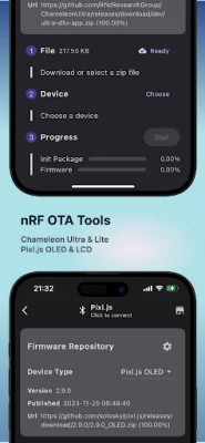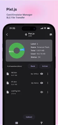 Pixl.js is another feature of the application that allows for BLE file transfer, dump uploading, and slot name editing. Users can also upgrade the firmware of their Pixl.js device using this application.