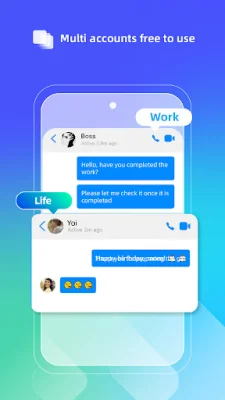 With Multi App, you can also keep your personal and professional accounts in separate dual spaces. This helps maintain a good work-life balance and ensures that your work data and contacts never mix with your personal data. You can easily switch between your work and personal accounts, making it convenient to manage both aspects of your life.