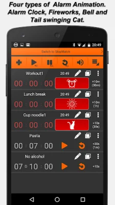 This application is a versatile tool that can be used in a variety of situations, such as cooking, sports, games, and more. It offers reusable timers with customizable parameters, allowing users to set different names, alarm sounds, lengths, colors, and even vibration and alarm animations. The user interface is designed to be intuitive and easy to use, making it quick and efficient to set timers.