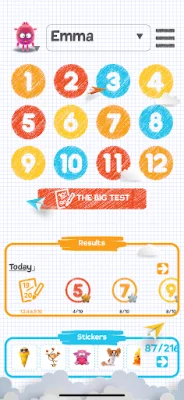 The app also provides detailed statistics for each child and multiplication table, allowing parents or teachers to track progress and identify areas that may need more practice. There are two game modes available: one where children can focus on a specific multiplication table, and another where they can choose which tables to include in a "big test". This allows for a personalized learning experience and helps children to feel more in control of their learning.