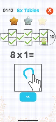 Overall, this app aims to make learning and practicing multiplication tables a fun and independent activity for children. It eliminates the "chore" aspect of homework and encourages children to improve their mental math skills in an enjoyable way. With its child-friendly interface, lack of advertising, and detailed statistics, this app is a great tool for parents and teachers to support children's learning and development in math.