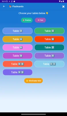Our app adapts to the child's skill level, allowing them to focus on tables up to 12, challenge themselves up to 15, or become a pro up to 20. And for an extra challenge, they can try the exciting test mode with a timer or practice stress-free without one.