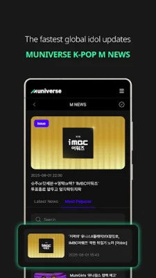 But that's not all - our application also features exclusive MUNIVERSE content. This includes original K-POP variety shows, dramas, news, and behind-the-scenes footage from concerts. This gives fans an inside look into the world of K-POP and allows them to stay updated on the latest news and events.