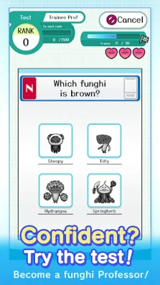 For those looking for a more challenging experience, the Funghi Test is available to test their skills and increase their Professor Rank. As users progress and unlock new challenges, the questions become more niche and rewarding.