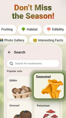 Mushroom ID is an application that allows users to identify different types of mushrooms and learn more about them. With this app, users can take a picture of a mushroom they are unsure about and use the smart AI algorithms to identify it. This feature is especially useful for those who are unfamiliar with mushrooms and want to avoid picking potentially dangerous ones. In addition to identification, Mushroom ID also provides users with detailed information about each mushroom in its database. This includes its appearance, edibility, season of fruiting, occurrence, and interesting facts. This allows users to not only identify mushrooms but also learn more about them and make informed decisions about whether or not to pick them. The app also offers a Snap History feature, which allows users to keep track of all the mushrooms they have identified. This is helpful for those who are foraging and want to make sure they don't pick the same mushroom twice. Users can also create custom collections of mushrooms and easily navigate through them using the app's smooth interface. Mushroom ID is not only a useful tool for foragers, but also for those interested in mycology. The app allows users to expand their knowledge of mushrooms and build their own personal collections. All personal data is protected in accordance with the app's Terms of Use and Privacy Policy, ensuring the safety and privacy of users. For any questions or inquiries, users can use the customer support form provided by the app. Mushroom ID aims to provide a comprehensive and user-friendly experience for those interested in mushrooms and foraging. So why not elevate your foraging experience and expand your fungus knowledge with Mushroom ID?