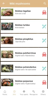 In addition to the recognition function, this application also includes a wiki with information on approximately 300 species of mushrooms. This wiki includes descriptions, photos, edibility ratings, and the date of growth for each species. This can be a useful tool for those interested in learning more about different types of mushrooms.