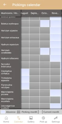The application also features a calendar that indicates the months in which different species of mushrooms can be picked. This can be helpful for those who enjoy foraging for mushrooms and want to know when certain species are in season.