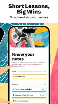 With interactive learning that sticks, this app offers quick lessons, quizzes, and exercises that build step by step. You'll also have access to fretboard and chord trainers with instant feedback, practical ear training and recognition drills, and the ability to learn at your own pace. Plus, you can apply every concept immediately to your favorite songs.