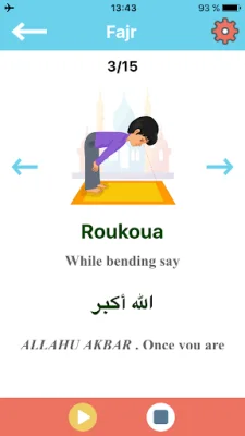 In addition to teaching the steps of Salah and Wudu, this app also offers a feature for children to memorize the prayers. By tapping the "Repeat Audio" button, children can listen to the audio repeatedly, helping them to memorize the prayers more easily. This feature is available in all three languages.