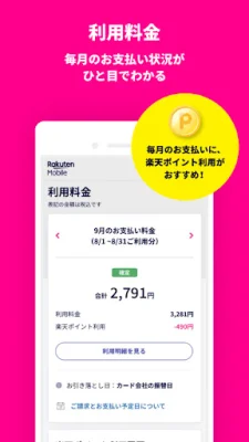 Users can also check their monthly fees, payment status, and usage details. They can even set up their Rakuten points to be used for monthly payments.