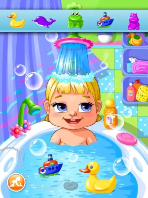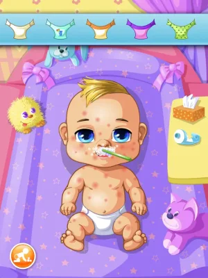 The first scene is bath time, where you can choose toys to make the baby happy before washing them with soap and shampoo. Next, you have to change the baby's diaper and wipe their nose. You can also apply cream to any rashes and brush their teeth before bedtime.