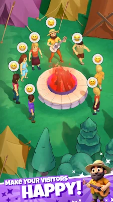 The game features hand-crafted visuals that bring the campsite to life, from glowing campfires to peaceful forest trails. Every detail is warm and inviting, making the park a joy to build and explore. Players can also participate in interactive cleanup, clearing debris and trash piles to keep their camping tycoon world clean and organized.