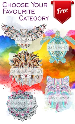 "MY coloring book" is a free mobile application that offers a variety of coloring books in different categories, including savanna wildlife, ocean life, flying with the wind, and popular mandalas for harmony. With this app, users can choose from a wide selection of unique coloring pages and add their own colors to bring them to life. The coloring process is made easy with a simple tap-to-color feature and a variety of color palettes to choose from.