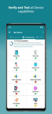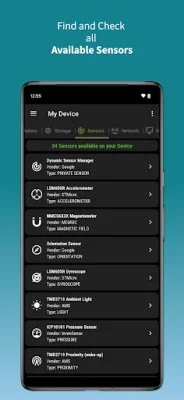 Users can also view their network information, such as connection status, data type, network type, IP address, MAC address, SSID, and link speed. The app also offers details about the device's camera, including specifications, megapixels, aspect ratio, white balance, scene mode, ISO, HDR, and more. Users can also access information about their device's sensors, such as the name, type, vendor, version, resolution, power, and maximum range. The app also allows users to check for various features on their device, such as WIFI, Bluetooth, GPS, camera flash, microphone, NFC, USB host, multitouch, and more.
