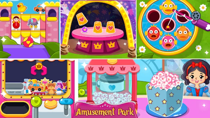 Feeling adventurous? Head to the fun carnival activities at the little princess amusement park! Knock out toys, go fishing, enjoy some delicious popcorn and pizza, and try your luck at the claw machine to collect cute toys.