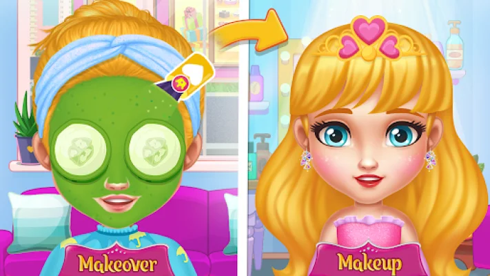Finally, it's time to relax and pamper yourself at the cute princess spa and salon. Show off your makeover skills by giving the princess a facial, doing her makeup, and styling her hair with beautiful royal accessories. And don't forget to dress her up in the latest royal princess outfits and accessories.