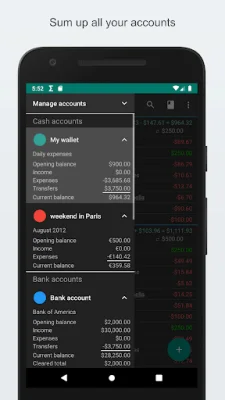 In order to function properly, My Expenses requires certain permissions such as access to your calendar for storing future and recurring transactions, internet access for anonymous usage tracking and crash reports, and access to your accounts for synchronization across devices via cloud services. With My Expenses, you can take control of your finances like never before and manage them with ease and efficiency.