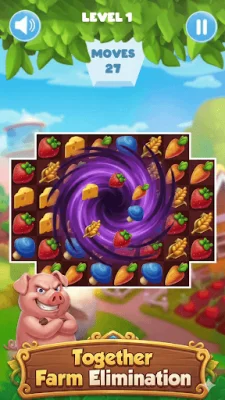 In this game, players will be able to match different types of crops, such as corn and strawberries, in order to activate special items like black holes and rainbow balls. These special items will help players clear the game board in one go, making it easier to progress through the levels. Additionally, players will be able to interact with a cute pig character who will display different expressions based on the player's matches. This adds a fun and unique element to the game.