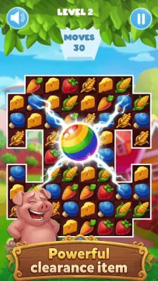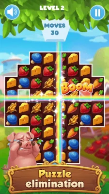 In summary, this farm-themed match-3 game offers a fun and unique gameplay experience with the addition of special items and a cute pig character. With move limits per level and cozy rural visuals, players can enjoy a casual and relaxing game in their free time. So come and join the fun, and see how many levels you can unlock with the help of the adorable pig!