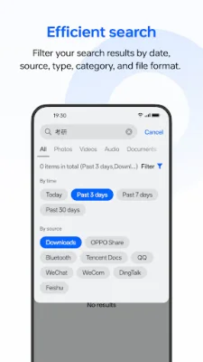 In addition to its smart categorization feature, this application also offers an efficient search function. You can filter your search results by various criteria such as date, source, type, category, and file format. This allows you to quickly narrow down your search and find the specific file you need.